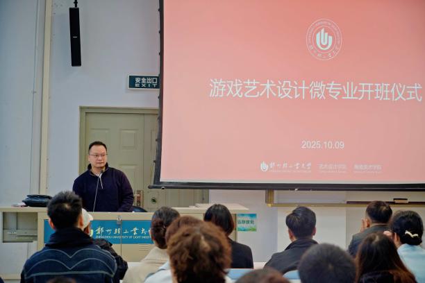 2025年10月9日下午16点,郑州轻工业大学凤凰彩票 在东风校区教三楼201室举办首届游戏艺术设计微专业开班仪式。凤凰彩票 领导魏华院长、微专业教学团队、企业导师与首届微专业全体学员齐聚一堂。开班仪式由数字媒体艺术专业系主任、微专业负责人张博文主持。